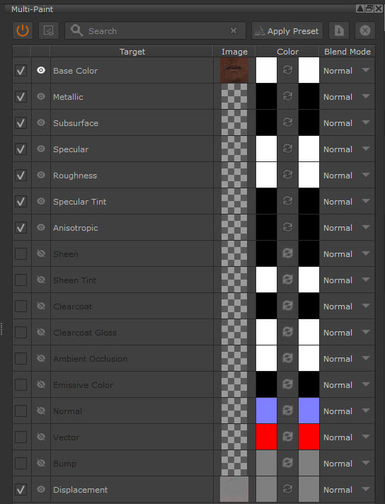 ) of your chosen stream in the Multi-Paint Palette, and choose an image from the window that appears. For example, the albedo image will be assigned to the Base Color stream.