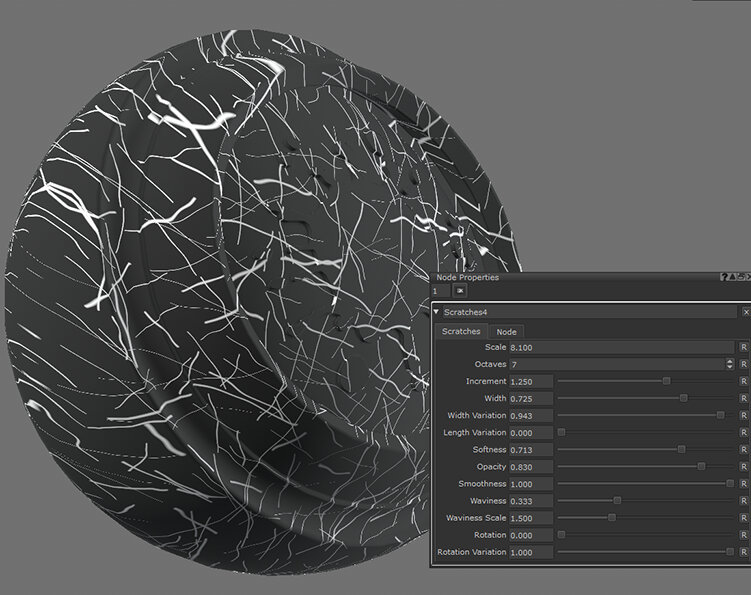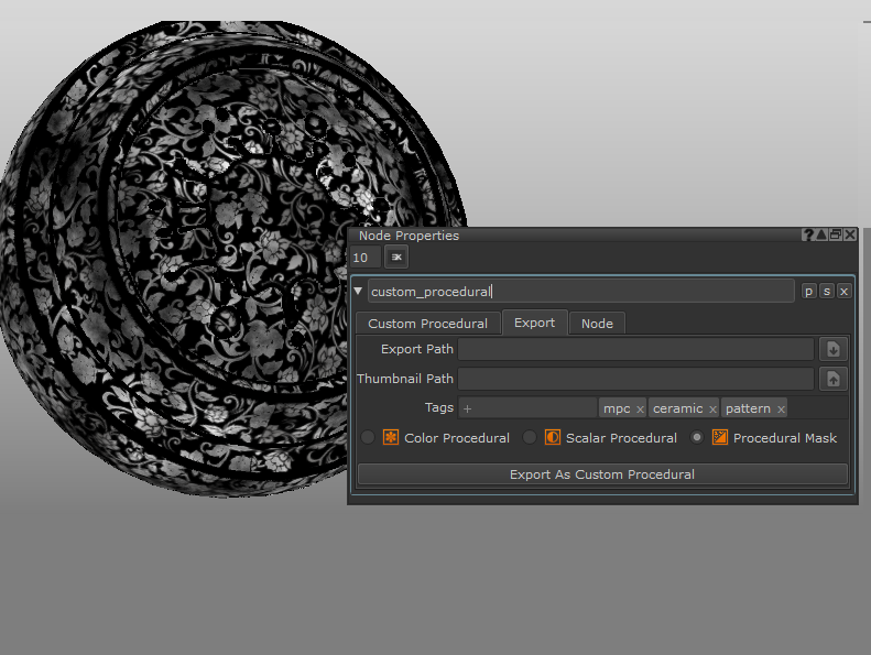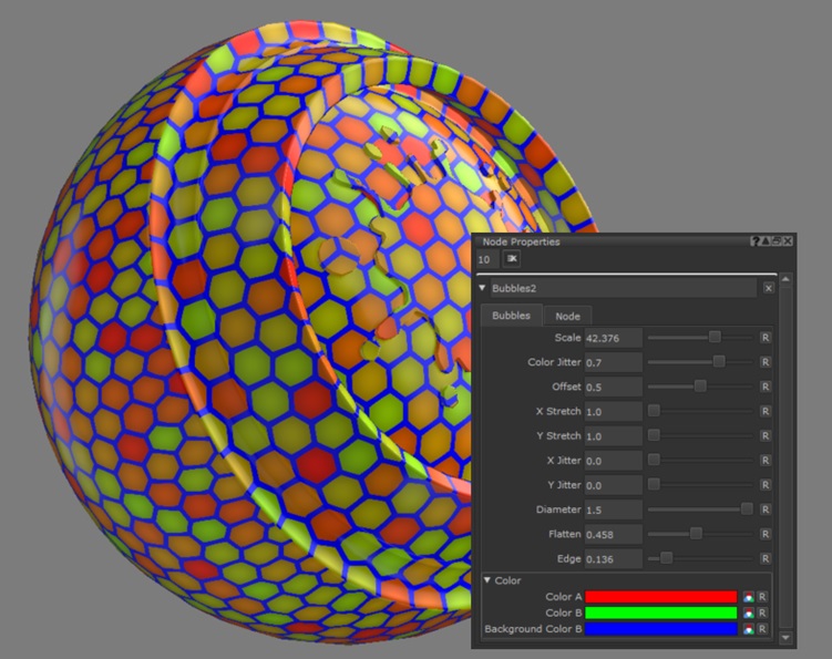Procedural nodes allow you to add texture patterns, grid patterns, environments, and masks to your scene using a variety of parameter settings.