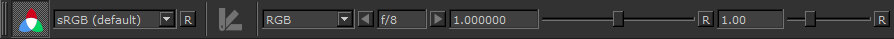 The View Transform Toolbar displays a number of options for managing your monitor's colorspace in Mari.