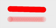 A stroke from the same brush with spacing set to .02, .25, .50, and 1.0: