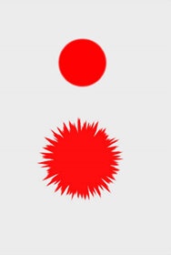 A stroke with and without radius jitter, where the jitter is equal to the whole radius of the brush: