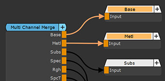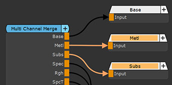 In Mari's Node Graph, you can either navigate from left-to-right (default), also called No Port List, or top-to-bottom, also called Show Port List. You can set the navigation type