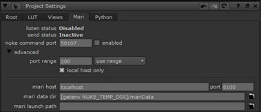 | 5. | Enter the machine name or IP address of the computer running Nuke in the Nuke Host field. If both Mari and |