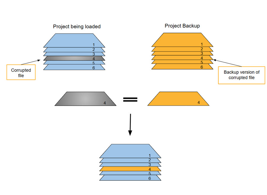 If you’re loading a project with a backup and there is a corrupted file, Mari will try and match the corrupted file with another backup version to repair the corruption so you can continue working on your project as expected.