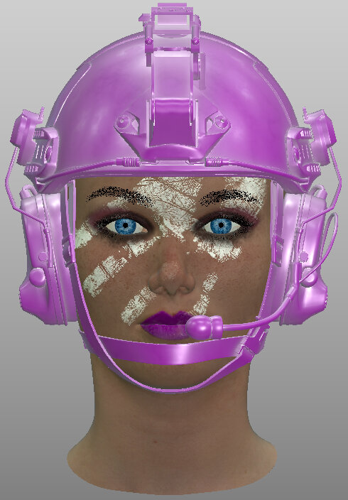 Viewing the helmet pink plastic material with the Current Material shader in the viewport. |