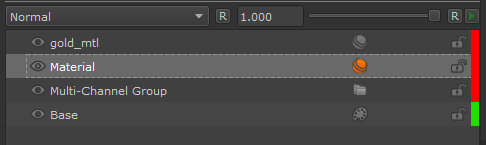 - Select a material or multi-channel group layer in the Layers palette.