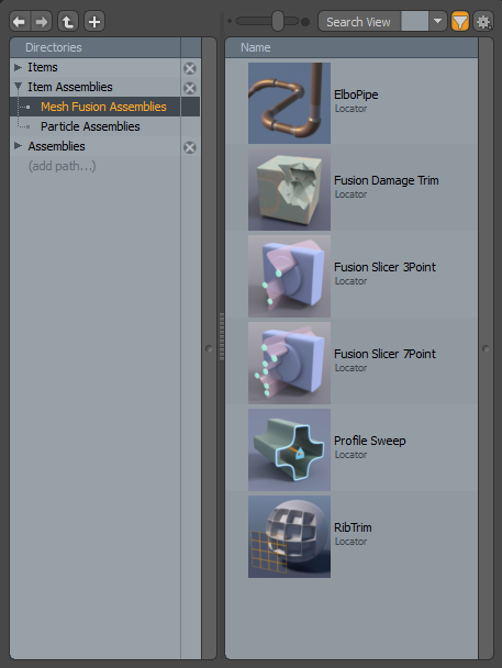 Tip: The Mesh Fusion Item Assemblies are no longer included with Modo but can be downloaded from the Preset Browser Cloud Assets > AddOns > Foundry section. Moving the assemblies outside the application, allows us to update and improve them independently of the Modo release schedule.