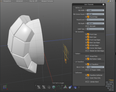 Automates the creation of frame, rib, and tile structures. This assembly creates patterns of edge looped blocks that may be used as Fusion Trims or Mesh Roles and Relationships. The blocks are aligned to selected geometry using a procedural UV Transform and / or a procedural Deformer. You can create and edit patterns as simple 2D meshes by creating planes with an arbitrary arrangement of polygons. For more information about Deformers, see Deformer Overview. Tip: You can transform the RibTrim channel controls to a new location in your scene and double-click on it to view the User Channel options. Watch the following videos for an overview. • RibTrim Assembly - Introduction |