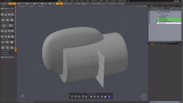 Creates a thickened plane with seven control points that allows you to set the path of your slice. This assembly has a Locator Item that is used to transform the assembly, Channel Handle controls, a B-Spline, and a polyline used to slice. All of the components of this assembly are seen in the Mesh Operations list. Once added to your scene, use the Transform tools to move and scale the slicer to the appropriate position on your model. Select the primaries and the slicing plane to trim. In the Toolbox, on the left panel, click Set new mesh to Subtractive Trim and apply to selected meshes. The geometry is sliced. Click the image below to view an animation. |