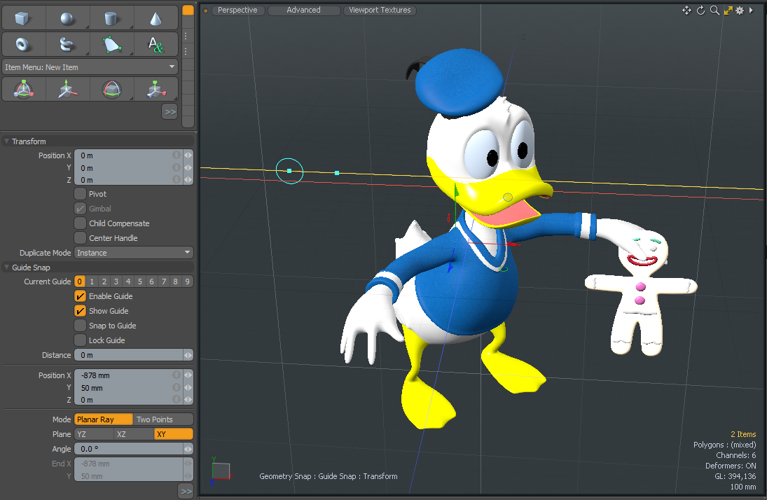 Tip: You can precisely control the position, plane, angle, and distance of the guide using the fields, as well as turn off the display of the guide, enable the guide, and turn the snapping on and off.