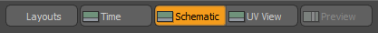 The center of the Game Tools layout is divided into three parts by default: a 3D viewport, a Preview viewport, and a Schematic viewport at the bottom. You can toggle these utility viewports with the buttons in the lower toolbar, similarly to the Game Tools panel.