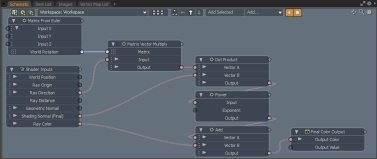 Render Outputs can be driven nodally, on a per-sample basis, through input channels for the color (Output Color) and value (Output Value) of each Render Output. This allows any shader or procedural texture to completely specify the pixels of the Render Output.