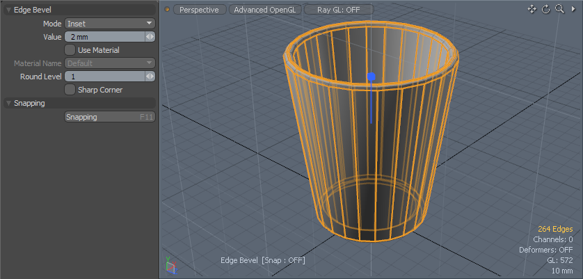 Tip: The Offset Angle is shown at the bottom of the Modo window, below the viewport.