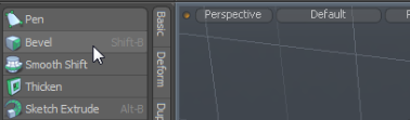 Modo offers multiple interface layouts, each with a toolset targeted at a particular task. Layouts are selected using the tabs directly under the menu bar. For this tutorial, we'll use the Model layout. This layout is designed for creating 3D objects using object primitives (simple shapes), and it provides a large perspective view of the scene.