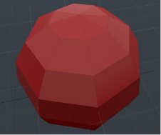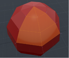 A polygon selection with maximum Hardness. Update Polygon Boundary is off. The polygons are faceted, note the separated vertex normals at the edge of the selection. | The same selection. Update Polygon Boundary is now on. The central polygons are faceted, and the perimeter is smoothed. Note the single, averaged vertex normals at the edge of the selection. |