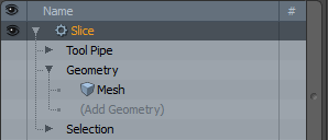 1. | In the Mesh Ops tab, click the Add Operator button, and navigate to Mesh Operations > Edit > Slice, or enter its name in the search bar. |