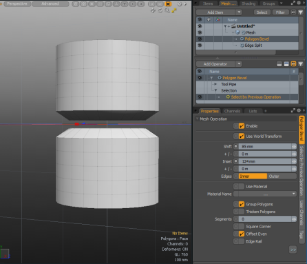 | 9. | In the Mesh Operations list, select Polygon Bevel and click + drag the blue handle to apply a bevel. |