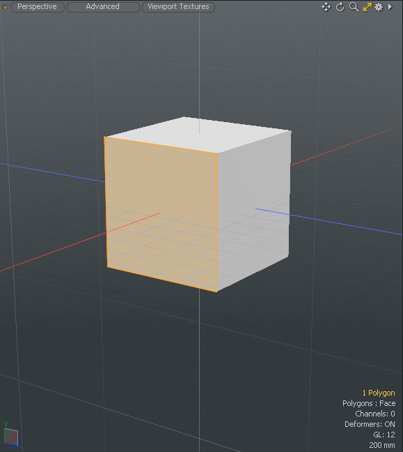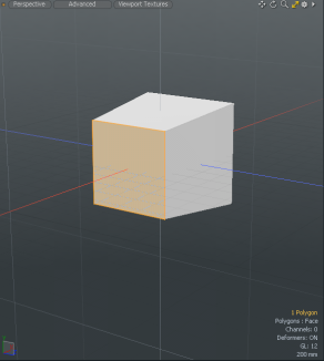 When applying the PolyScale Offset command, setting the Inset value re-sizes a selected polygon. In this example, the selected polygon is scaled onto the original Cube item.