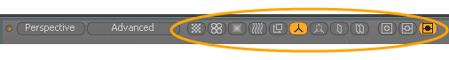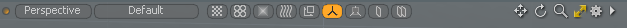 The left-most capsule button next to the Thumb is for choosing the way the viewport sees the scene (see Tool HUD). Click on it to open a pop-up menu that allows you to choose fr om the available options of Perspective and various isometric views, or viewing the scene from the Camera or Lights point of view or Ray GL options giving you a fast, fully rendered in-viewport representation of the scene. The Viewport Textures icon allows you to quickly select Environments, Matcaps, and UV Textures to display in the 3D Viewport without having to add them to the Shader Tree. For more information, see Viewport Textures.