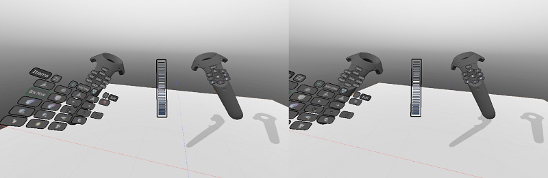 The main way to interact with Modo VR is through hand controllers. When wearing the HMD you should see the two controllers.