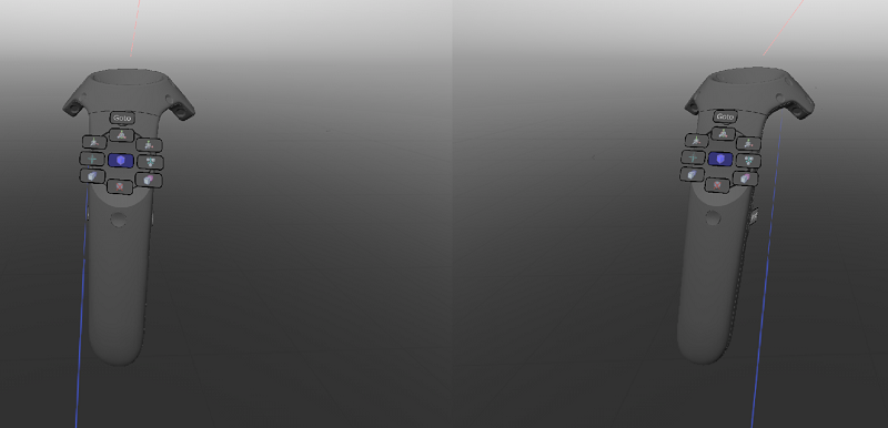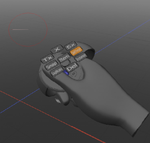 The main way to interact with Modo VR is through hand controllers. When wearing the HMD you should see the two controllers.