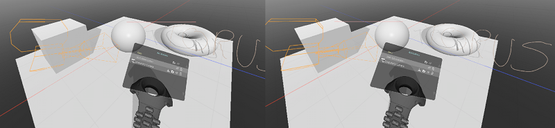When in HMD mode it is not easy to use the keyboard. So to allow notes to be taken the sketch tool has been used to allow sub-meshes to be added for leaving notes. The sketch tool will leave a trail behind when the trigger is held down and the controller moved around. This can be used to place arrows, highlights, or roughly drafted text in the 3D scene.