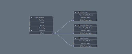 The Probe Ray Max Depth and Offset channels can be connected within Modo’s Schematic viewport, allowing the Decal Planar MeshOp to drive the Probe Ray Max Depth directly.