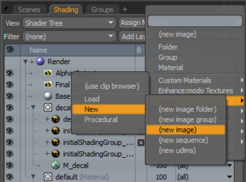 Decals can also be baked using the Texture Cache and well as the Bake Item in the shader tree. For more information, see Optimize Your Textures Using the Texture Cache and Working with Bake Items and Baking Tools.