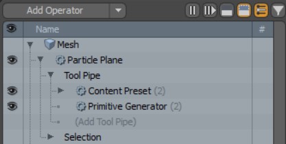 - In the Mesh Operations Viewport, expand the Particle Plane operator to the Tool Pipe level.