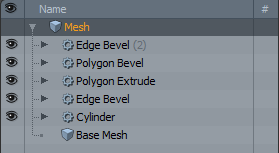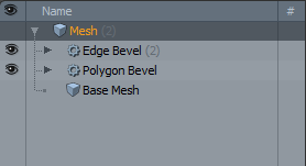 Modo creates a new mesh layer with the collapsed Mesh Operations list, while preserving the original mesh stack.