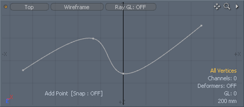 To use the Add Point tool, locate the tool button in the Edges sub-tab of the default modeling toolbox and click it. This activates the tool. Next, in the 3D viewport, locate the target edge for the operation. The mouse pointer must be close enough to the edge to trigger the pre-highlighting (turning the edge a light blue color). Clicking on the edge adds the new vertex. Subsequent clicks repositions the vertex, while clicking and dragging slides the vertex along the target edge. Clicking away from the model removes the current active vertex point. Pressing and holding the Shift key adds a new vertex with each click. When the tool is activated the Add Point options are available in the tool properties panel.