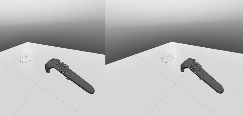 The main way to interact with Modo VR is through hand controllers. When wearing the HMD you should see the two controllers.