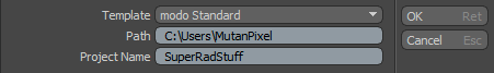 This generates the default folders within the specified location, and sets Modo to use the new created structure. Once a Project is specified, Modo's Save As dialog opens the appropriate project directory folder by default.