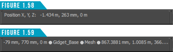 The 3D Tracking Info (Figure 1.58) displays valuable information but is often overlooked. This handy viewport is located in the lowerleft corner of the UI and displays 3D tracking information based on the cursor’s location.