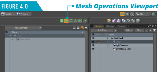 To enhance our workflow, let’s display the Mesh Operations List in our workspace. Open the Right Viewport using the Viewport Switcher Pie Menu (Alt+Spacebar), and select the Mesh Operations Viewport as seen in (Figure 4.0).