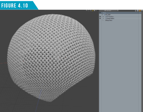 The UV Transform meshop has all sorts of uses, such as deforming a woven mesh into a spherical shape as seen in (Figure 4.10).