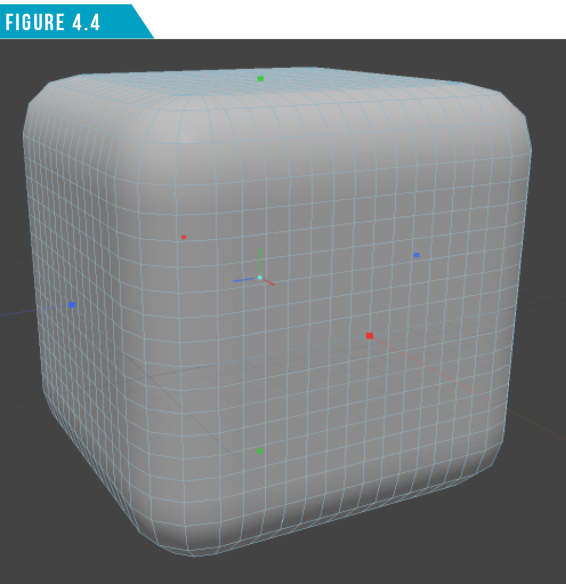 Select the Cube layer in the Mesh Operations List and adjust its Radius attribute to a value of 50 mm. Your procedural cube should look like (Figure 4.7).
