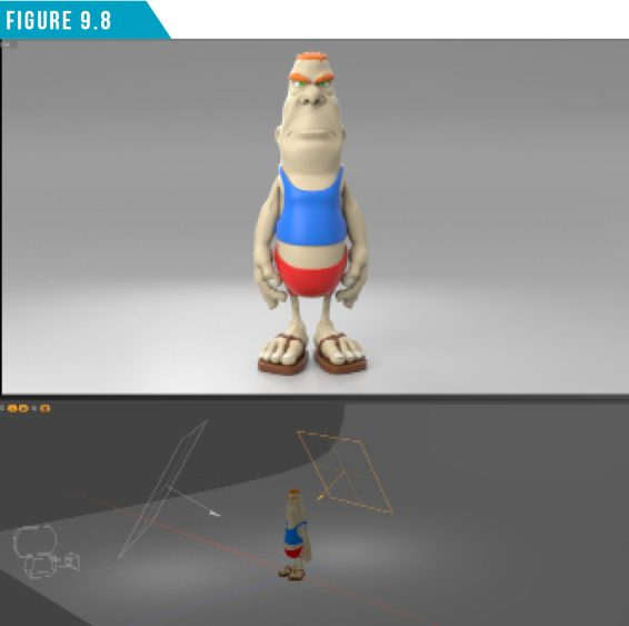 Lighting and Texturing play off each other, so I like to get my lighting 90% in place before moving on to texturing. Everyone has his or her own workflow when it comes to lighting, but this method has served me well over the years. When you’re happy with the lighting of your scene, we will move on to texturing. I settled on the simple setup in (Figure 9.8).