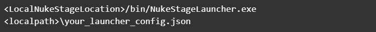 Tip: To remove the need to use the command line, you can create a windows shortcut to the NukeStageLauncher.exe and add the launcher config argument to the target in the shortcut Properties.