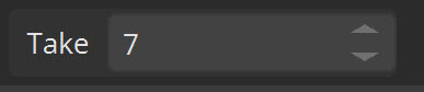 • Take - Defines the take number for Snapshots and Takes. Once you start recording Takes, this will automatically increment. You can also manually adjust this value, and it will reset to 1 if you change the slate.