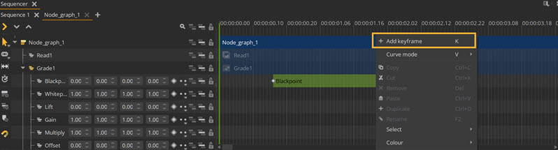 Tip: Alternatively, you can press K while holding the mouse over the frametime you want to add a keyframe to.