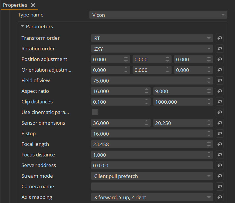 Once you choose a Stream type, you can then specify stream Parameters. Within the parameters are basic camera attributes such as Field of view, Aspect ratio and Clip Distances.