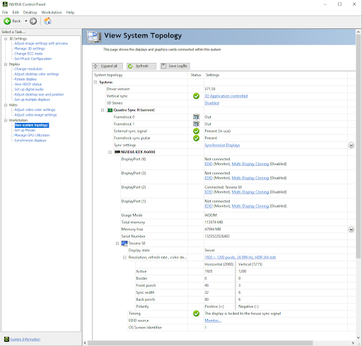 Proper configuration in the NVIDIA Control Panel is essential for consistent synchronization across all RenderNodes. The most important information can be found within the below Control Panel subsections.