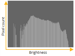 The Histogram graphs the number of pixels at each brightness level, and from left to right, the areas of the Histogram represent shadow, mid tones, and highlights.