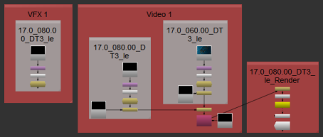 The Nuke Comp is displayed in light red, signifying that the Nuke Comp has not been rendered. You can choose to render it by either, right-clicking and selecting Render Comp, or by selecting Render > Render Selected Comp Containers.