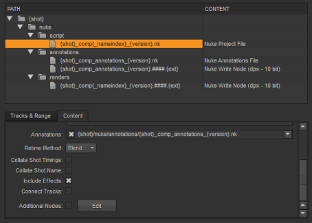 | 3. | Select the Nuke script in the Path section of the dialog, and then scroll down in the Content section at the bottom of the dialog. |