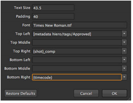Nuke Studio can burn-in text during the export process using a simple Nuke gizmo. The gizmo contains controls for the font style and fields denoting the position of the text. You can also add burn-in directly on timeline using the Burn-In soft effect. See Soft Effects for more information.