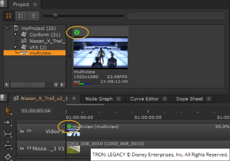 • Only multi-view .exr and .mov files are currently supported. Separate files per view, such as _left and _right .dpx files, are not supported in the Timeline environment.