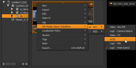 | 2. | Right-click a selected item and navigate to Set Media Color Transform. |