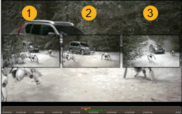 • When the playhead is on the target clip instance, the Viewer displays the In frame (1), the current frame (2), and Out frame (3), allowing you to accurately gauge the output of the clip instance against the current frame.